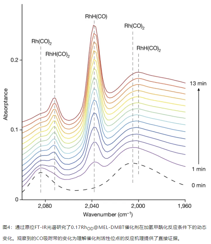 氢甲酰化反应能将烯烃在一氧化碳和氢气气氛下催化转化为醛,是烯烃高附加值转化利用的重要途径。全球每年有超过1000万吨的烯烃通过该反应路径实现了高值转化,是目前规模最大的均相催化过程之一,其中铑催化的丙烯氢甲酰化占烯烃氢甲酰化全部产能的70%以上,该过程产物正丁醛通常会被进一步转化为正丁醇与2-乙基己醇,二者是生产增塑剂、洗涤剂、涂料、药物等大宗生活用品的重要基础化工原料。但由于铑分子催化剂与原料、产物处于同一相态,反应后催化剂分离与循环使用中不可避免地伴随着铑的流失。近年来,铑价格大幅攀升,这一问题尤为突出。人们一直在寻求有效的解决方案,一种可行的思路是开发可以重复使用的负载型多相催化剂,并有效减少铑金属的流失。但由于缺乏与均相催化剂中相似的配体环境,一般认为负载型催化剂的催化活性中心是不受立体效应影响的、可自由旋转的“二羰基铑氢”([HRh(CO)2])物种,其在氢甲酰化反应中对生成具有更高附加值的正丁醛的区域选择性(regioselectivity)很差。这是目前多相负载型氢甲酰化催化剂走向实际应用所面临的最重要挑战。