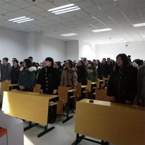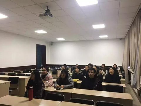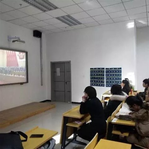 在赛罕校区文史楼第四公共教室的观看现场,每位观看的人员都认真聆听习近平总书记的讲话,并且做着笔录。