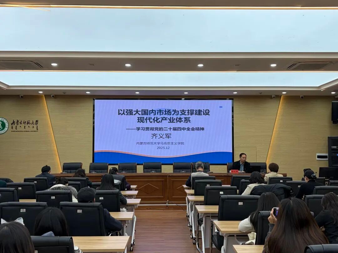 党的二十届四中全会是我们党在向第二个百年奋斗目标进军新征程上召开的一次十分重要的会议,为当前和今后一个时期国家发展擘画蓝图、明确路径,具有重大现实意义和深远历史意义。报告会上,齐义军教授紧扣全会精神核心要义,围绕“立足内需:时代之变与战略选择、产业跃升:建设现代化产业体系、市场筑基:纵深推进国内大市场建设、内蒙古新篇:服务大局的布局与实践”四个方面,进行系统阐释与全面解读。