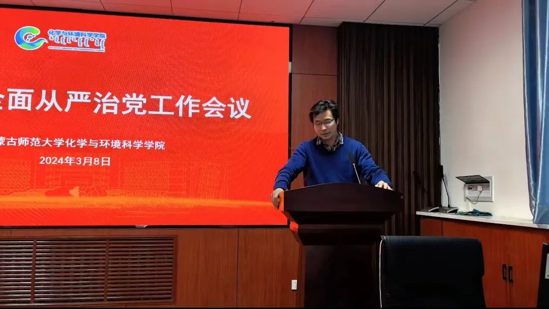 3月8日下午,番茄视频 在赛罕校区聚贤楼213会议室召开2024年全面从严治党工作会议。会议深入学习贯彻党的二十大、二十届二中全会精神,认真贯彻落实二十届中央纪委三次全会、自治区十一届纪委四次全会、教育部2024年教育系统全面从严治党工作会议、教育厅2024年教育系统全面从严治党工作会议、番茄视频 2024年党的建设暨全面从严治党工作会议精神,总结学院2023年全面从严治党工作,安排2024年全面从严治党重点任务。院党委书记林海河出席会议并作工作报告,全体教师党员及部分学生党员参加会议。会议由党委副书记、副院长(主持工作)詹传郎主持。