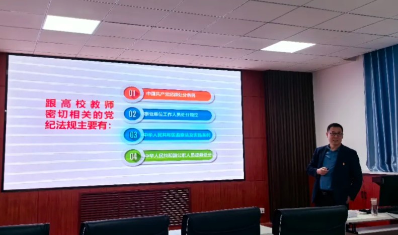 林海河围绕《中国共产党纪律处分条例》《事业单位工作人员处分规定》《中华人民共和国监察法及实施条例》《中华人民共和国公职人员政务处份》等与高校教师密切相关的党纪法规,着重罗列出规范性文件中的教师禁止行为,对审查调查程序、纪律处分的种类及处分影响进行深入解读,引导党员教师加强党纪学习教育,进一步强化纪律意识,严守纪律规矩,筑牢“正己”之魂。