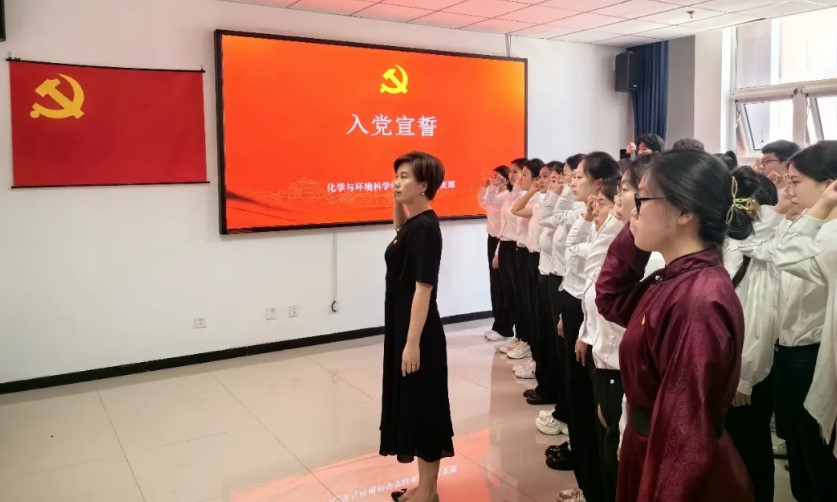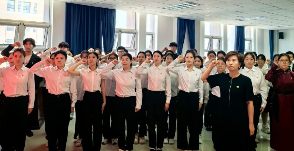 鲜红的党旗指引奋斗方向,铿锵的誓言抒发报国情怀。