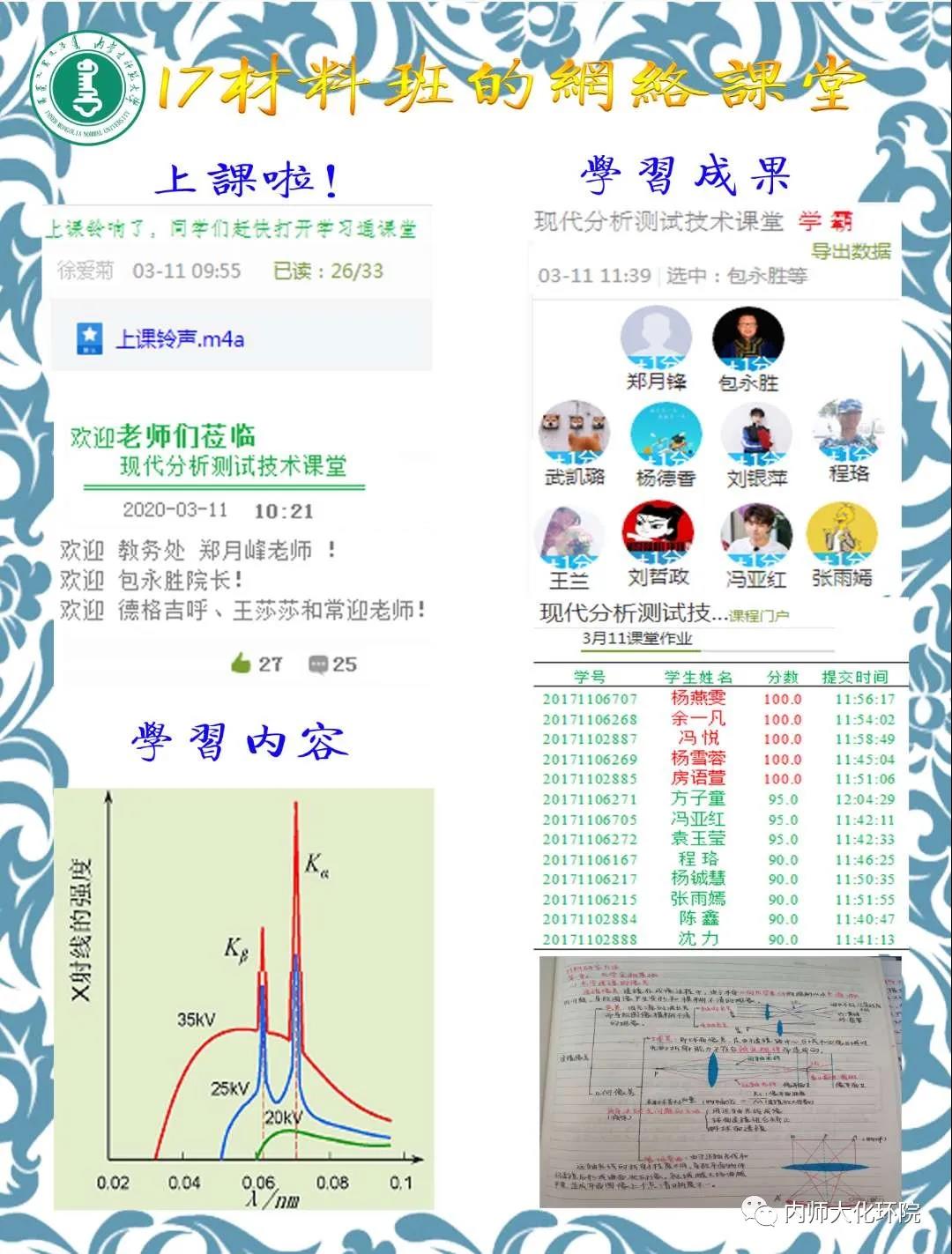 网络学习多样化,为学习带来了新的意义。大家距离是遥远的,但心是近的;学习的方式改变了,但学习的热情没有减。同学们学习好知识,做个有理想的材料人,做出更好的 “新型功能材料”服务社会!