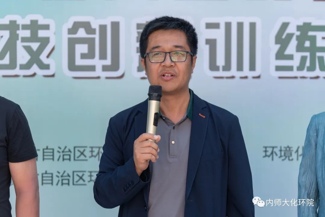 在开营启动式中,科技处(社科处)副处长邬友、副院长包永胜向同学们致词,呼吁大家树立环保意识,走进环境化学实验室,从科技发展的前沿了解环境监测、治理及保护方法,从而为中华民族的生态文明建设贡献一份力量。
