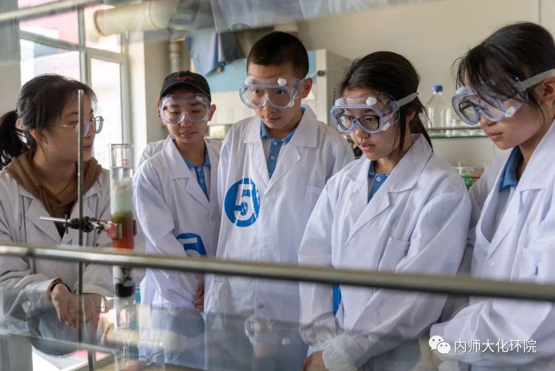 在精彩的科普知识讲座后,在内蒙古自治区环境化学重点实验室硕士研究生的带领下,同学们穿上实验服,戴上护目镜,深入重点实验室进行参观,并亲自动手参与了水的净化、酸雨的危害、喷泉实验、分辨水中藻类等多种有趣的科普实验,在动手实践的过程中感受环境保护的重要性及科技创新带来的实际意义。