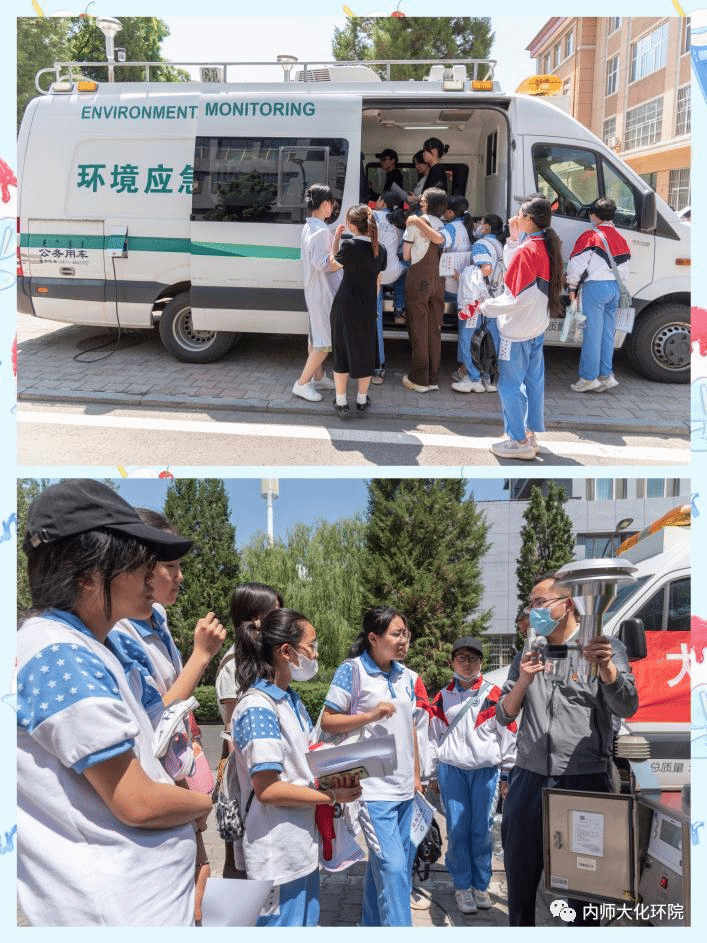 随后,内蒙古自治区环境监测总站大气监测室工作人员向同学们展示了环境应急监测车的功能、设备及方法,并现场演示如何进行环境监测,同学们认真听讲,踊跃参与,场面十分活跃。