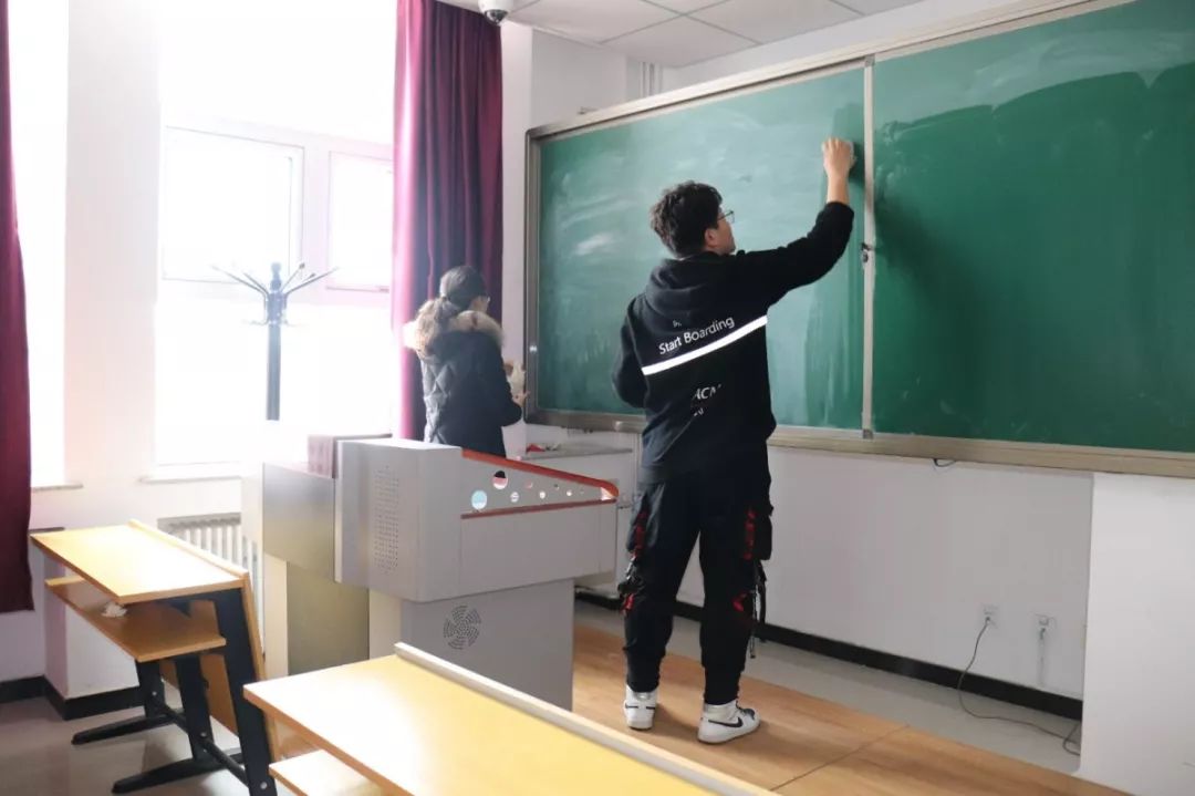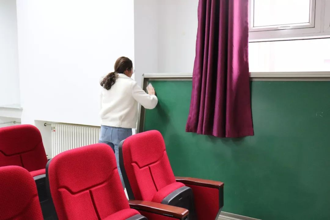 参加活动的同学们,把行动落实到每个班的讲桌、黑板、课桌以及地面和各个角落。同学们认真做好自己的工作,为建造美丽教室奉献自己的一份力。