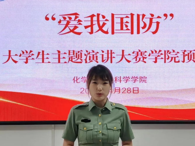 经过一番激烈的角逐,每一位选手都全力以赴,展示了他们最好的风采,本次“爱我国防”大学生主题演讲大赛学院预赛最后的胜出者是2022级化学三班的朱芙蓉同学。