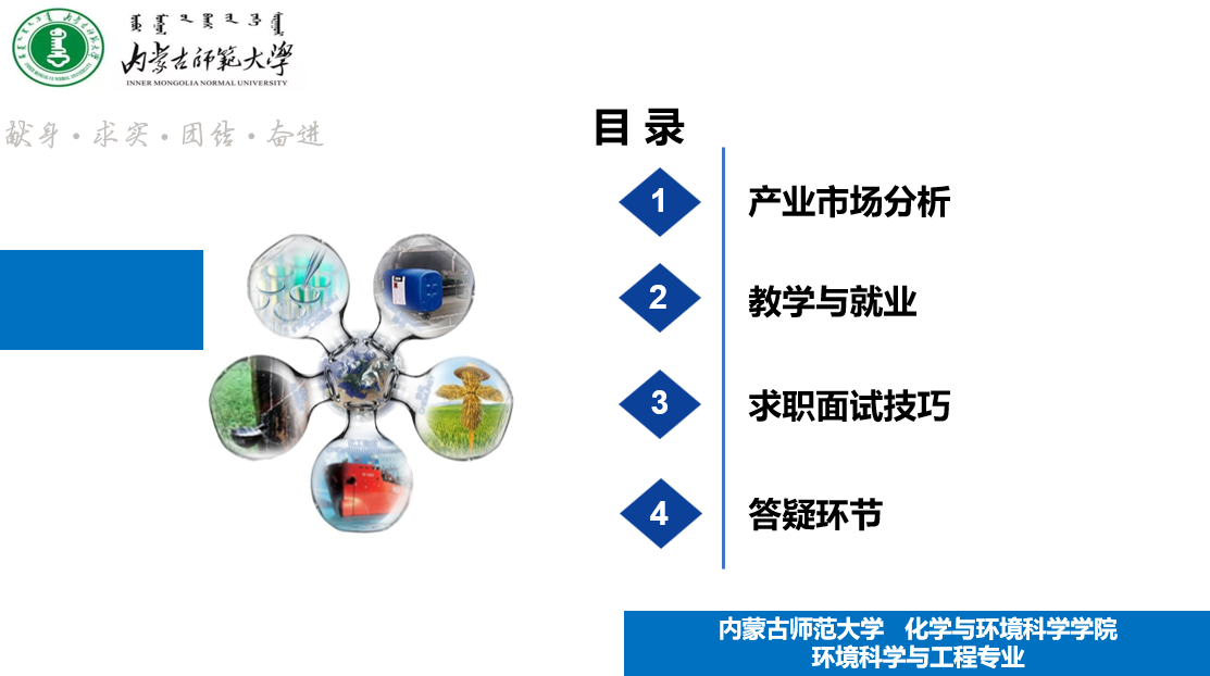 环境科学专业的就业水平和质量,以此激励同学们向更为广阔的环保市场挺进。