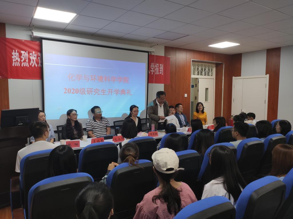 2020级研究生开学典礼在化学楼102教室隆重举行。本次开学典礼由胡日查副书记主持。首先,全体参会人员起立,伴随嘹亮的国歌声拉开了此次开学典礼的帷幕。然后,刘子忠书记和贾美林教授热烈欢迎新生的到来,介绍学院的概况,表达对学生们的殷切希望。随后新生代表李春浩和在校生代表申延龙表达了莘莘学子应当肩负的责任和对未来的向往。最后,整个开学典礼在铿锵有力的校歌中完美落幕。