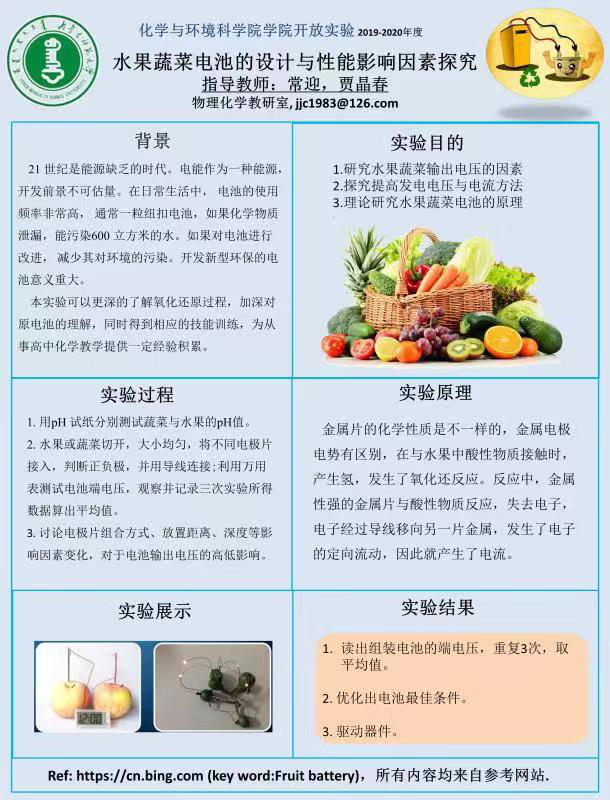 学院“开放实验”是一项结合学院特色,实现学生全天自主实验,全方位提高学生自主创新、独立思考能力的活动。每个项目参加学生人数为4人,每一组学生只能选一个实验,每组利用“排课选课”小程序,有教师建立课程,小组组长选课的方式进行。“开放实验”指导老师制作宣传海报,学生根据自身兴趣自主选课。每个项目的负责人结合开放实验内容及实验室条件、专业特点及学生的实际情况,按照因材施教的原则,指定科学合理的实施方案,使学生经历一个相对较完整的科研过程,每个环节须对学生提出明确的要求,并在规定时间完成。