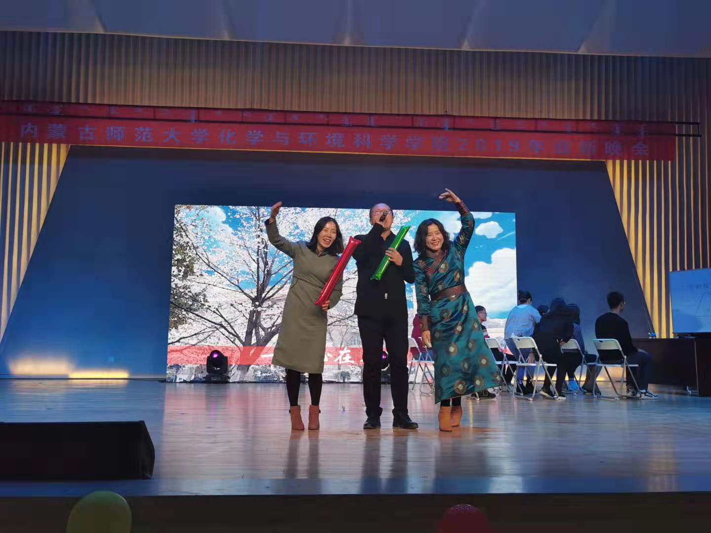 院长贾美林教授,学生工作处副处长宝贵老师,学院党委副书记兼副院长胡日查老师,副院长包永胜教授,党委委员、工会主席王奖老师,党委委员爱军教授,党委委员赵斯琴教授,环境科学系主任代钢老师,实验中心主任满都拉老师,研究生教学秘书张阳老师,物理与电子信息学院辅导员宋鑫伟老师,团总支负责人王淑娟老师,学工办负责人白赛纳老师、各班班主任、任课教师以及兄弟院系学生会主席出席了本次迎新晚会。