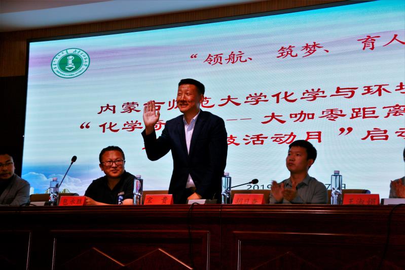 启动仪式上,院党委副书记、副院长胡日查老师,副院长包永胜教授分别对“化学奇妙夜—大咖零距离”系列活动和“科技活动月”进行介绍,2017级化学汉班安可欣同学讲话,她积极表态,呼吁同学从我做起,加强学风建设。
