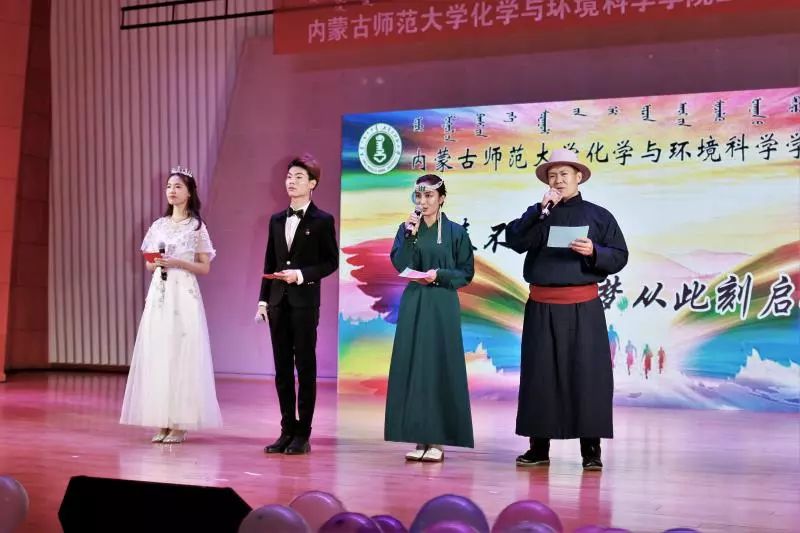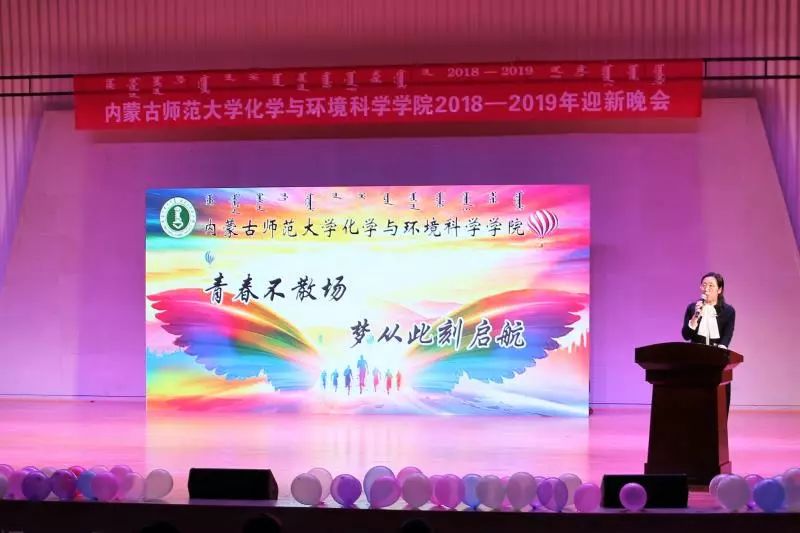 化学系主任王晓丽教授、环境科学系主任代钢老师、材料化学系主任徐爱菊教授、无机化学教研室主任赵斯琴教授、分析化学教研室主任爱军老师、实验中心副主任萨嘎拉老师、团总支负责人王淑娟老师、学工办负责人常成虎老师、研究生党支部书记张阳老师、晚会策划人和负责人何朝鲁门老师以及各班班主任还有兄弟学院的老师及学生们出席本次迎新晚会。