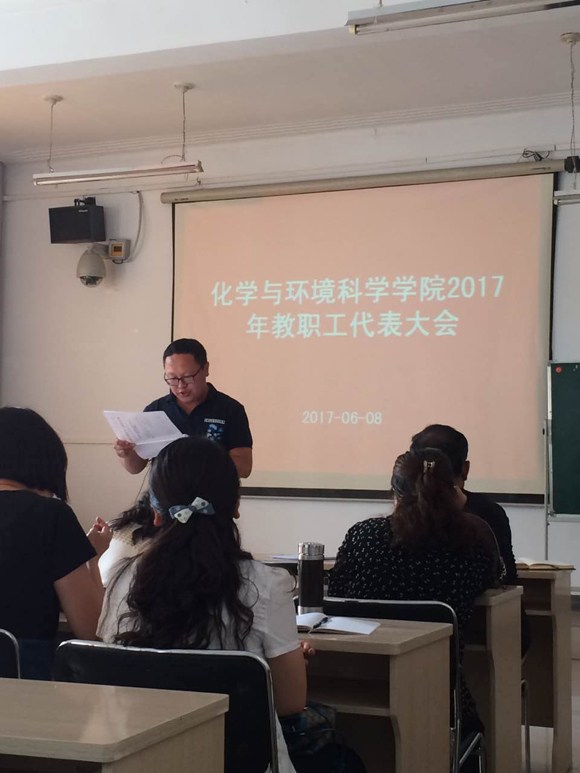 在文史楼第四公共教室隆重举行2017年全体教职工代表大会。