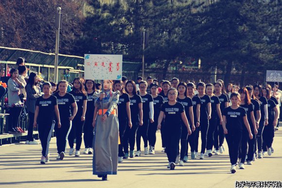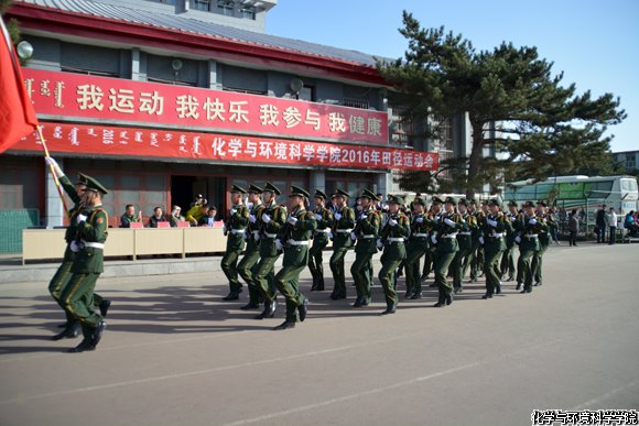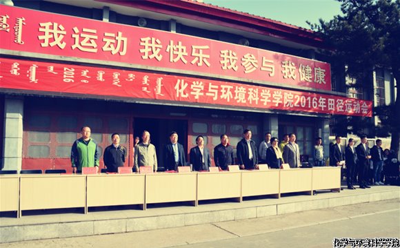 田径运动会拉开了帷幕。出席本次运动会的学院领导有:院长长山教授、党总支副书记王凤岐、副院长刘子忠教授、副院长王勇教授。化学系主任王喜贵教授、环境科学系主任乌云教授、材料化学系主任德格吉呼教授,工会主席包永胜副教授、团总支书记宝贵在主席台就坐。