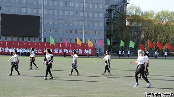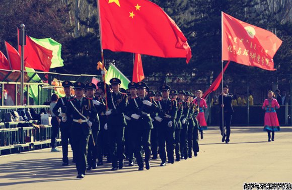 英姿飒爽的国旗护卫队,踏着铿锵有力的步伐,行进在队伍的前列……旗手护卫院旗,庄严肃穆,气宇轩昂……彩旗队员,手擎彩旗,迎风招展,无比鲜艳……裁判员列队整齐,神采飞扬……各班级代表队精神抖擞,意气风发……可爱的卡通人物方队萌翻全场……“民国风”运动方队汇成一片蓝色的海洋……大苯环造型的运动方队彰显学术氛围……各个代表队风格迥异的展演让人耳目一新,赢得观众声声喝彩。
