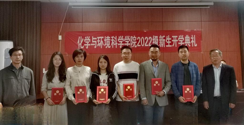 刘子忠书记和詹传郎院长为2022级7位新生班主任颁发聘书。