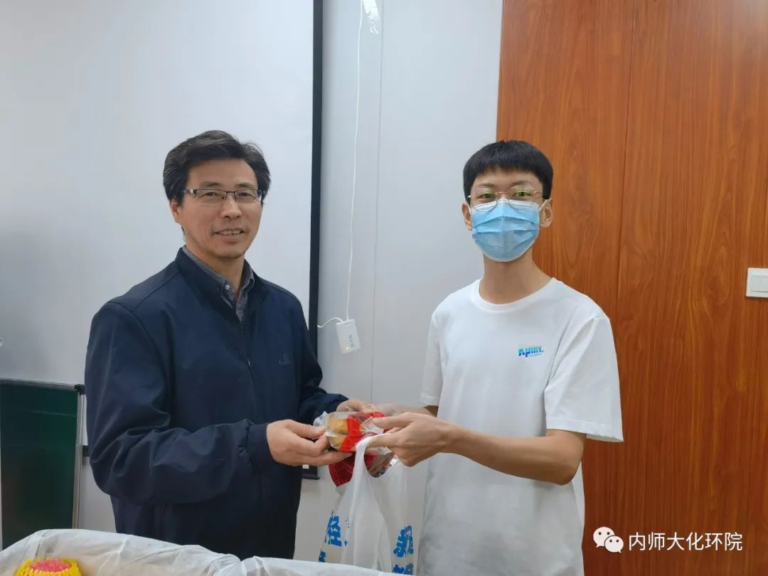 院党委书记刘子忠教授、党委副书记、主持工作副院长詹传郎教授、副院长包永胜教授、学生工作负责人范磊老师、学就办副主任白赛纳老师、辅导员阿斯汉夫、孙光明老师在两校区开展中秋慰问。领导老师们给同学们送来了精心准备的月饼、水果等节日食品,向同学们致以节日的问候,叮嘱同学们认真军训、努力学习,鼓励各民族同学要团结一致,在师大一起过中国传统节日。号召同学们做好防护、认真落实疫情防控要求“非必要不离呼、非必要不出校”。老师们纷纷为同学们送上节日祝福,希望同学们能度过一个难忘、快乐的中秋佳节。同学们的幸福感油然而生,同时对老师们送上教师节的祝福。