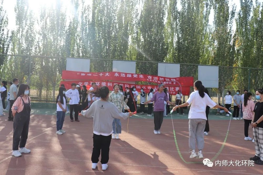 在南操场举行了“双人跳绳比赛”。64组选手参加了比赛。比赛开始前,选手们进行热身运动,个个情绪高涨,跃跃欲试。