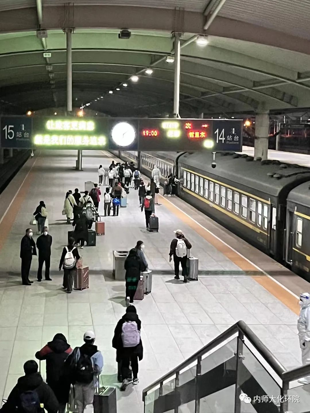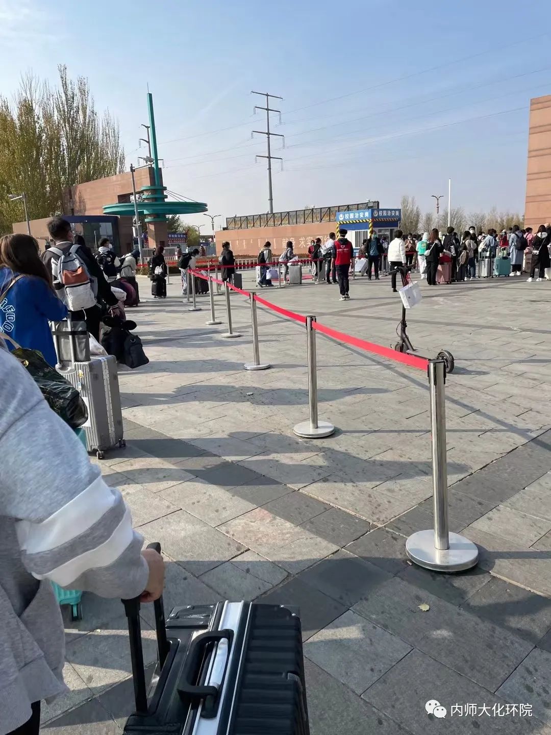 离校途中,学生们与老师挥手告别,感谢老师们的辛苦付出,并让老师们注意休息。老师也叮嘱学生注意防护,平安回家。我们相信,爱与希望定会比病毒蔓延的更快。愿每一声再见背后都是重逢,所有的后会有期都是来日的别来无恙。待凛冬离去,雪融草青,我们再次相约内师大,相约化环院!