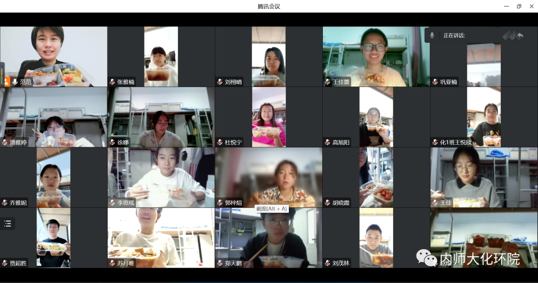 为了第一时间了解到学生们的用餐情况,让同学们在宿舍也能感受到“家”一般的关怀,老师还在线上与同学们共进晚餐。