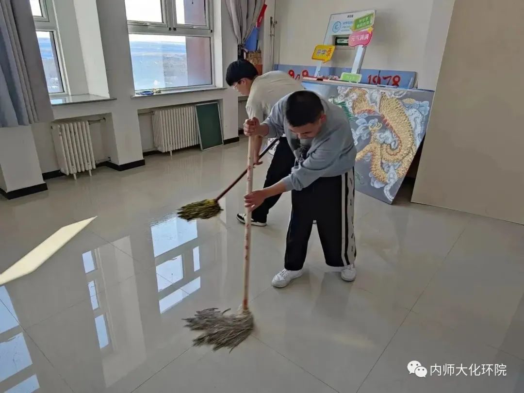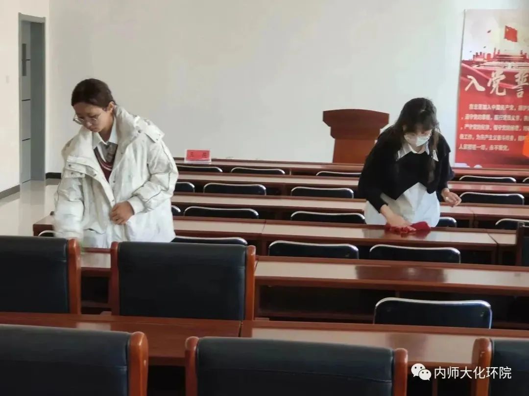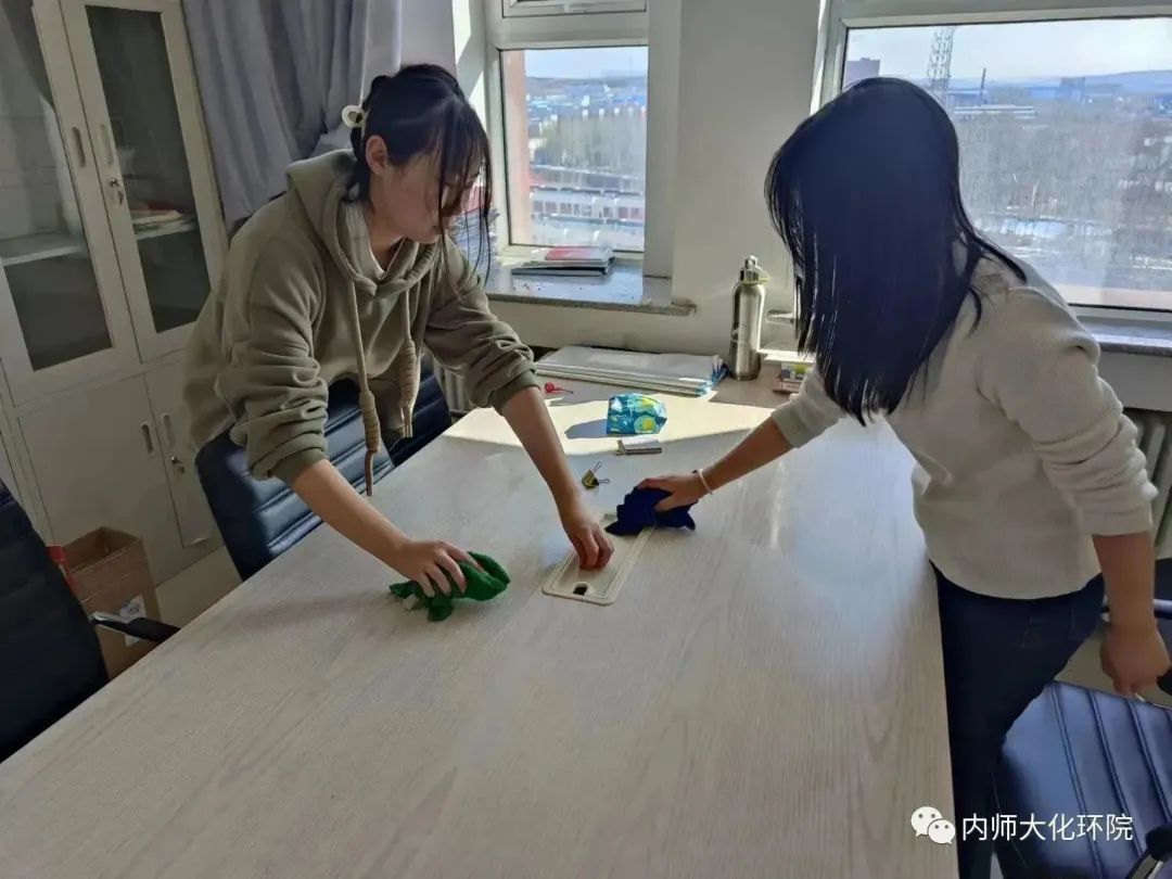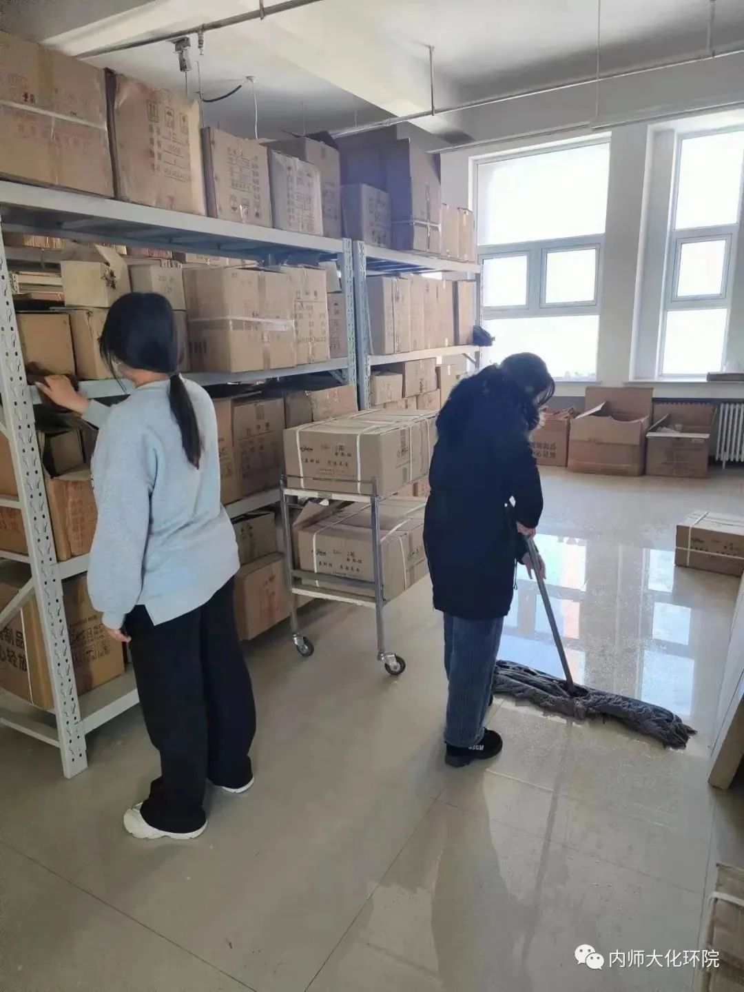 2022届的同学们负责清洁无机、教法实验室。实验室里,同学们扫地、拖地、整理实验器具和药品,并对实验台进行消毒。在实验室老师的指导下将堆积的仪器等物资进行整理,小心地摆放到指定地点。学生会与志愿者服务队的同学们对办公区进行了彻底细致的清扫及消毒。整个清洁过程中,同学们不放过任何一个角落,爱室如家,干劲十足。每个人都做到了各尽其职,各负其责,大家齐心协力把理工楼打扫的焕然一新、整洁明亮。