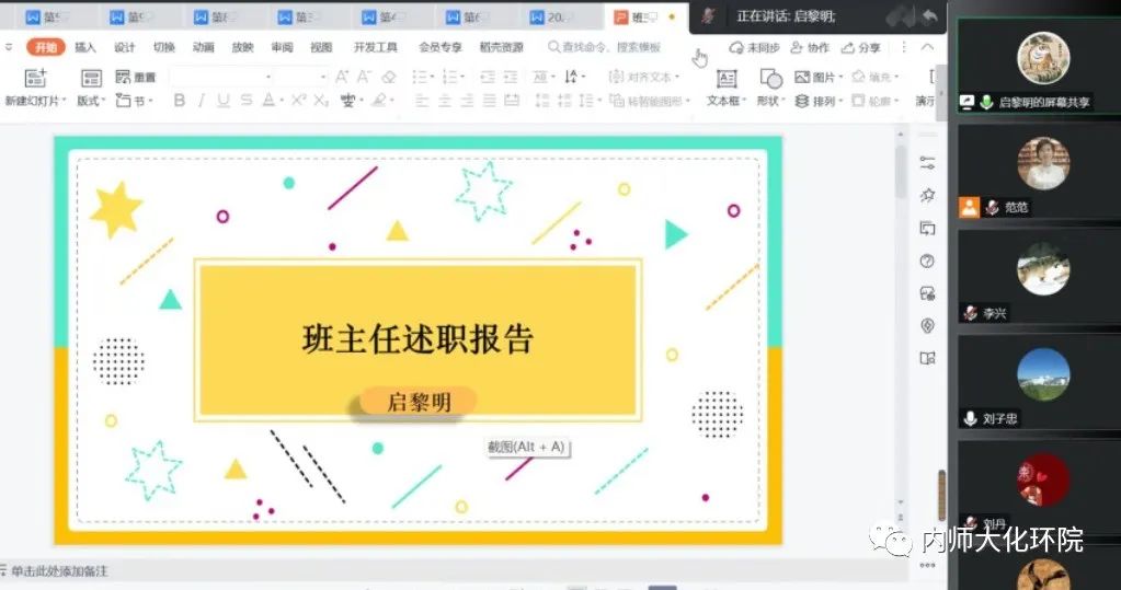 本次会议由各班班主任分别进行述职报告。各位老师从班级实际情况与班主任工作需要出发,从班级基本情况、班风学风、奖助贷补、社会实践以及教学技能竞赛等方面进行了详细的分析和总结,并针对学校学生管理方面的重点、难点进行了探讨与展示。班主任老师结合具体案例,分享了在学生管理中的一些成功经验,深入浅出的谈了新形势下班主任工作面临的困难和挑战,对今后怎样做好学生工作等问题谈了各自的想法,并表示在日后的教学过程中应当努力激发学生的主动性,培养学生良好的学习生活状态。