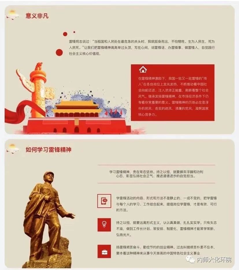 学习雷锋好榜样,雷锋精神代代传。愿雷锋精神吹遍校园的每一个角落,愿爱与温暖播撒在每一个化环学子的心间!