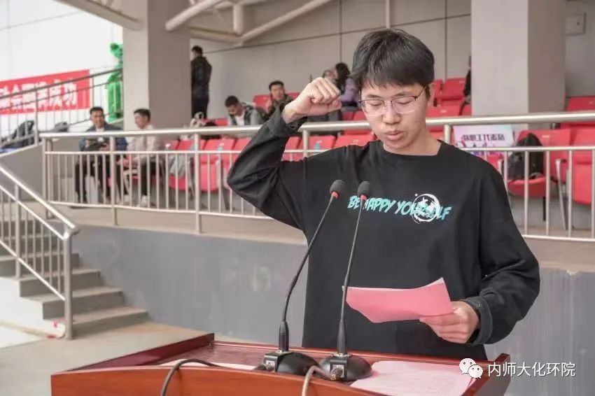 2019级环境科学蒙班金刚同学代表运动员宣誓;2021级化学汉3班石明同学代表裁判员宣誓。