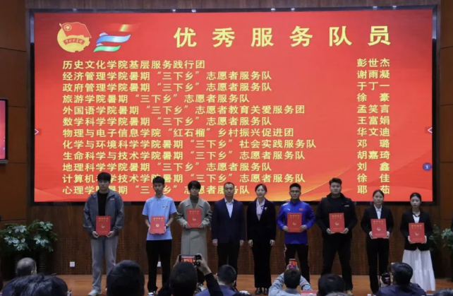 2024年暑期“三下乡”志愿者服务队荣获“十强志愿者服务队”荣誉称号;范磊老师荣获“优秀指导教师”荣誉称号;邓璐同学荣获“优秀服务队员”荣誉称号。