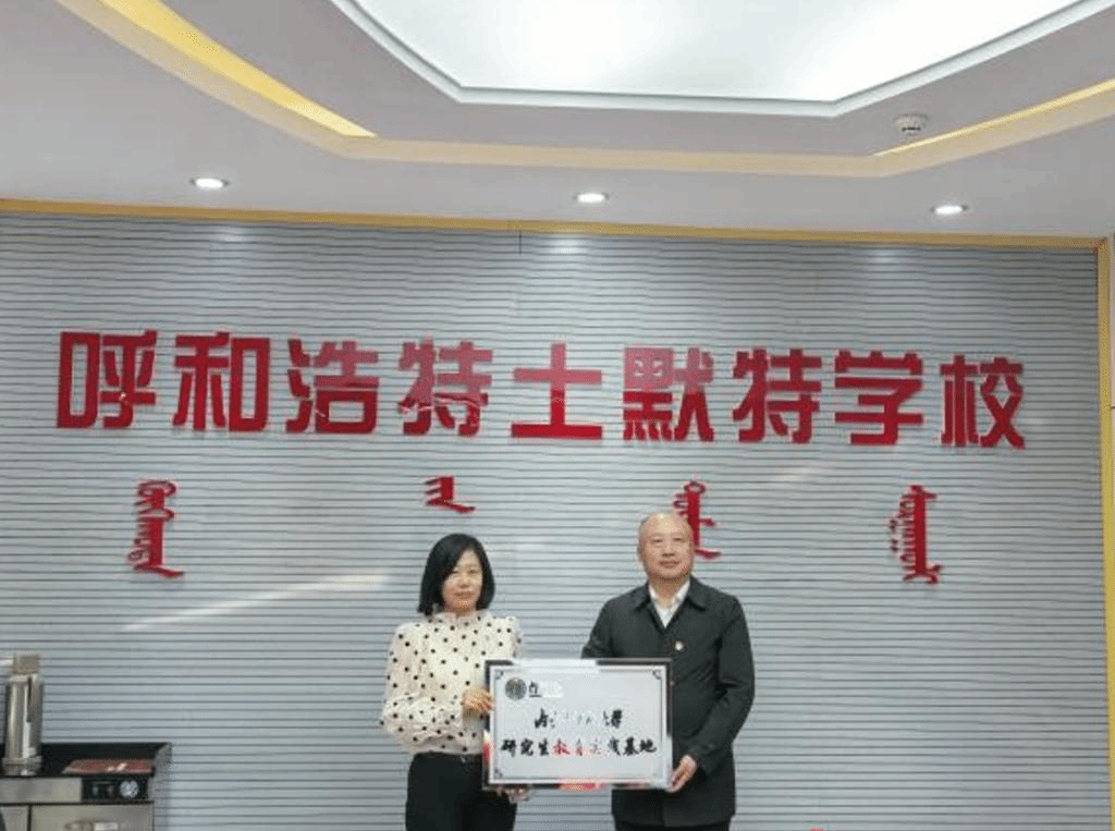 实践基地”牌匾,呼和浩特土默特学校领导庄重接牌,双方合影留念,标志着教育实践基地正式成立。随后,双方代表签订实践基地合作协议,明确了在研究生实践教学、师资培训、教育研究等方面的合作内容与责任义务,为两校合作提供了坚实的制度保障。