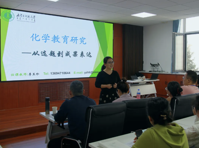 学科教学(化学)及课程与教学论(化学)专业学位点负责人李玉珍教授作了前沿理念与实践经验的深度分享,国培计划(2024)的49名初中化学优秀教师聆听了讲座。