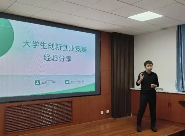 组织开展“竞智启航”双创竞赛经验分享讲座。讲座邀请到了辛旺老师和我校优秀毕业生李春浩同学为大家分享大赛经验。院党委副书记、副院长范磊、学院部分拟参赛青年教师及学生参加讲座。