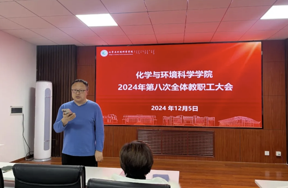 在赛罕校区聚贤楼213会议室召开第八次全体教职工大会。学院领导班子成员、全体教职工参加会议。会议由院党委书记林海河主持。