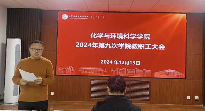 在赛罕校区聚贤楼213会议室召开第九次全体教职工大会。学院领导班子、全体教职工参加会议。会议由院党委书记林海河主持。