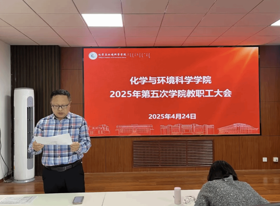 在赛罕校区聚贤楼213会议室召开2025年第五次全体教职工大会。学院领导班子成员、全体教职工参加会议。会议由院党委副书记(负责人)、副院长范磊主持。