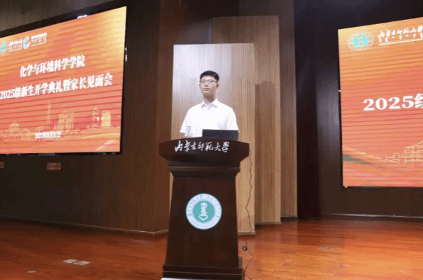 2025级新生开学典礼暨家长见面会在盛乐校区隆重举行。院党委副书记(负责人)、副院长范磊,院党委副书记、副院长詹传郎,副院长包永胜,化学系主任王帅,环境系主任代钢出席会议。新生班主任、辅导员、2025级同学以及家长参加会议。会议由副院长焦燕主持。
