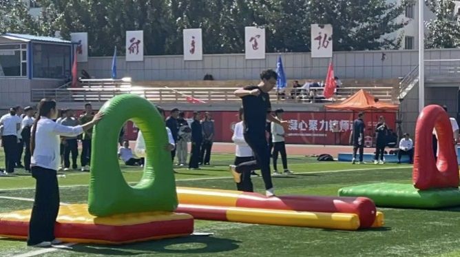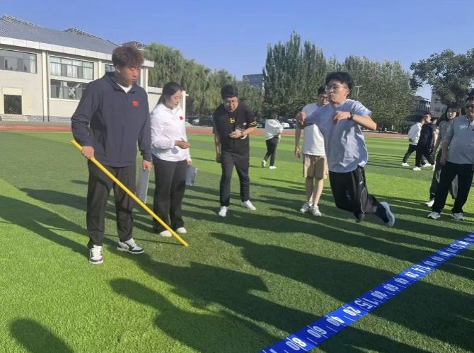 团体项目中,老师们心往一处想、劲往一处使,在接力赛等项目里默契配合,每一次交接、每一次跳跃都凝聚着团队的汗水。