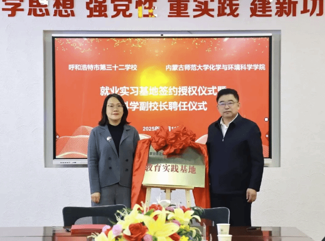与呼和浩特市第三十二学校共建师范生教育实践基地签约暨科学副校长聘任仪式在呼和浩特市第三十二学校成功举行。呼市第三十二学校校长胡志远、党总支书记郭兰兰、副校长刘芳、校长助理武楠、党政办主任刘琪琳等领导班子成员、化学组全体教师,番茄视频