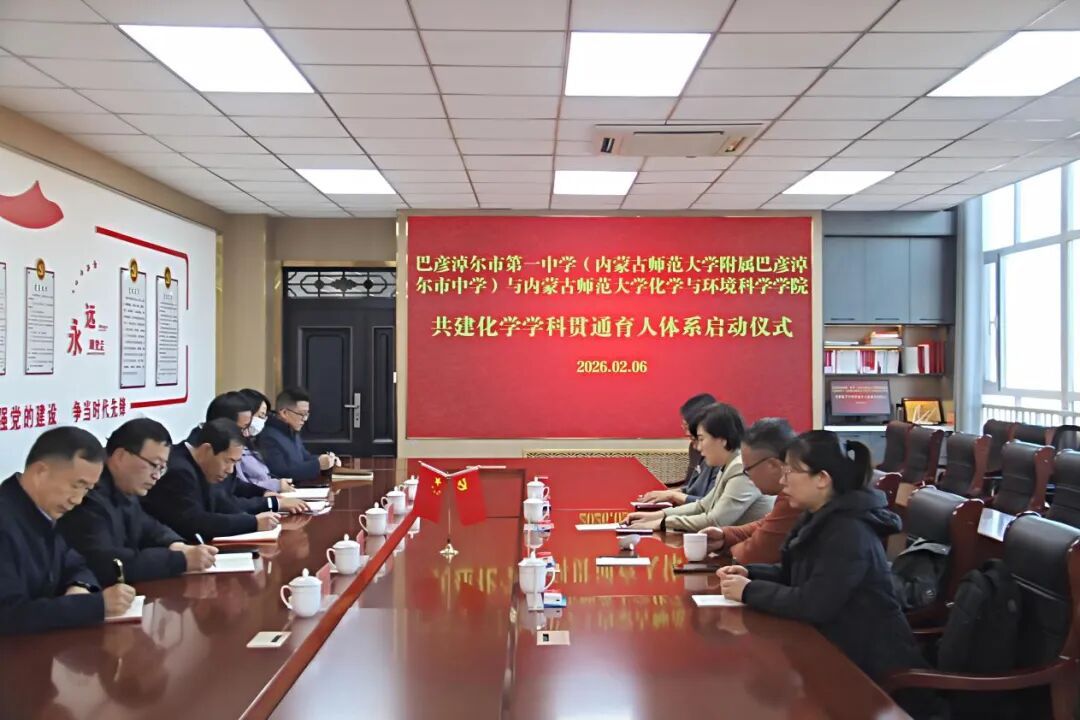附属巴彦淖尔市中学)共建化学学科贯通育人体系启动仪式在巴彦淖尔市隆重举行。本次合作立足高校与中学协同育人核心目标,聚焦化学学科优质教育资源整合共享,深化双方既有合作基础,为学生成长成才搭建全新发展平台、开辟多元进阶路径。两校相关负责同志参加启动仪式。