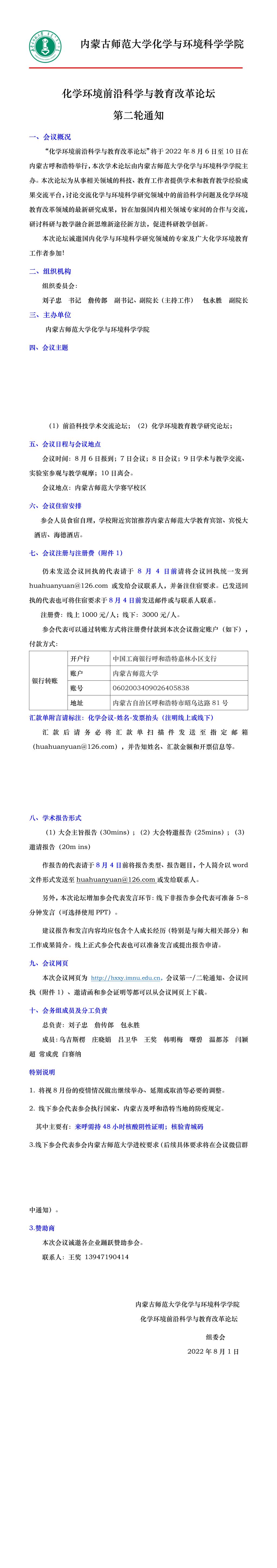 番茄视频 化学环境前沿科学与教育改革论坛第二轮通知
